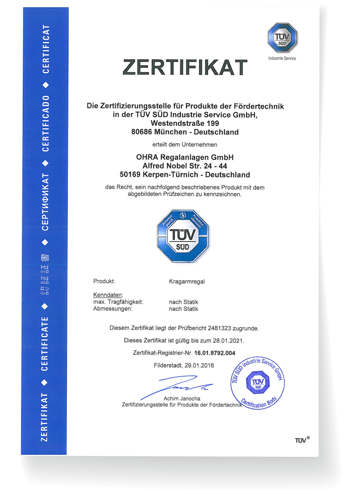 OHRA werd hiervoor als eerste onderneming in de branche door de hoge voorgaven van de TÜV Süd gecertificeerd. Met wereldwijd dezelfde hoge kwaliteitsstandaarden onderstrepen wij onze aanspraak een naar de toekomst georiënteerde en betrouwenswaardige partner voor u te zijn.
