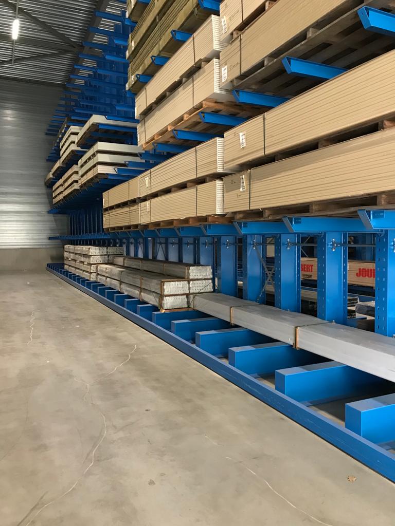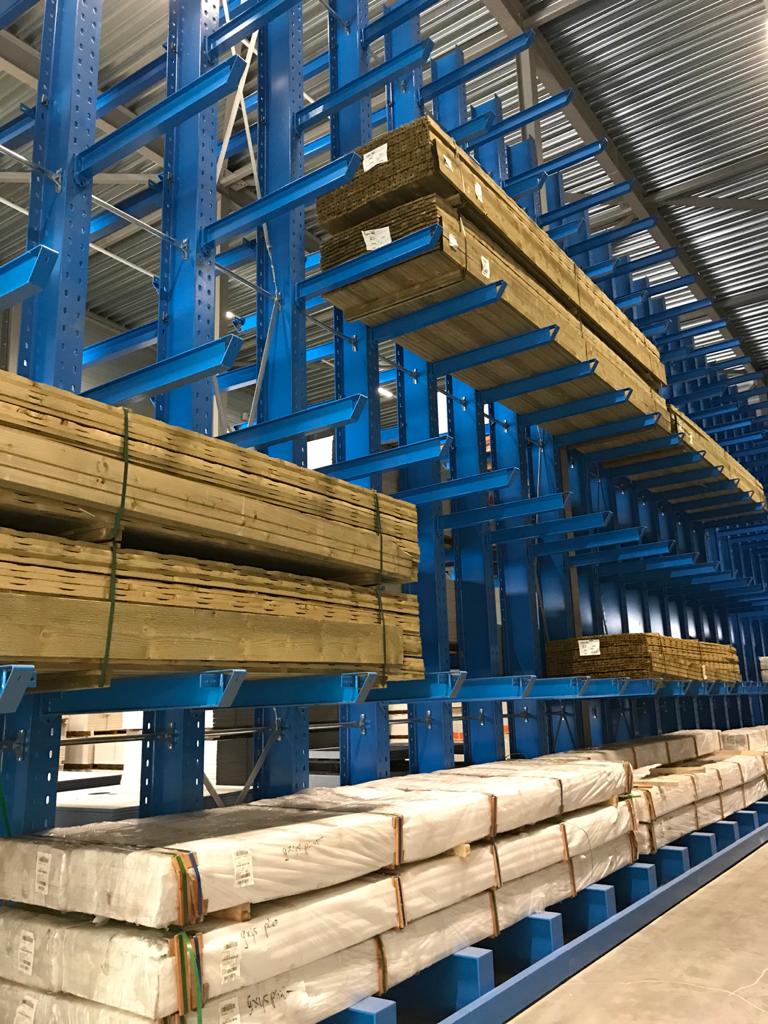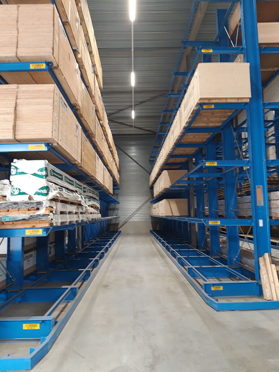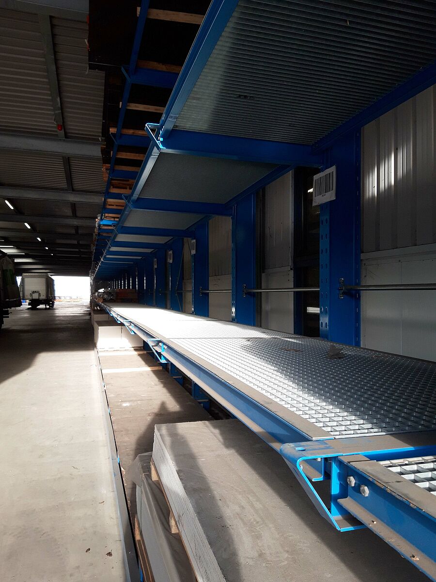 roosters: op deze manier kan materiaal dat op pallets is opgeslagen ook flexibel worden opgeslagen in de draagarmstellingen. Het stellingsysteem wordt bediend met een zijlader en truckgeleiding op de voeten van de stelling vergemakkelijken het manoeuvreren in de stellinggang.