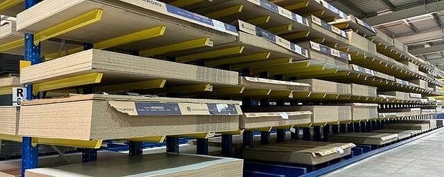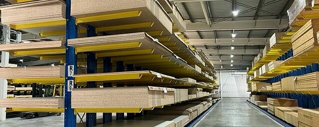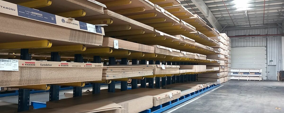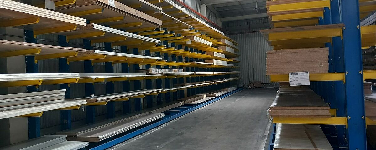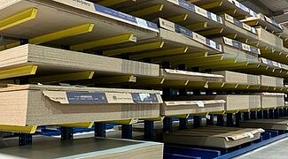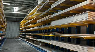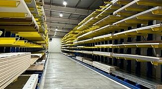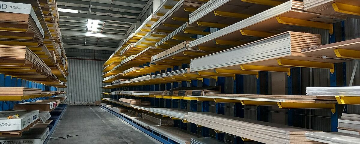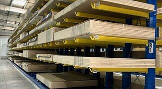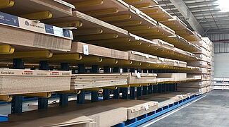 Daarom besloot Arabesque om de vloeropslag te vervangen door verscheidene rijen draagarmstellingen van OHRA. De stellingen hebben een hoogte tot 5.280 millimeter, de 1.200 millimeter lange draagarmen kunnen lasten tot 850 kilogram dragen. Alle stellingen zijn uitgerust met truckgeleiding, zodat er zo min mogelijk ruimte nodig is voor de gangen van de stellingen, maar de vierwegstapelaar er toch gemakkelijk in kan rijden.