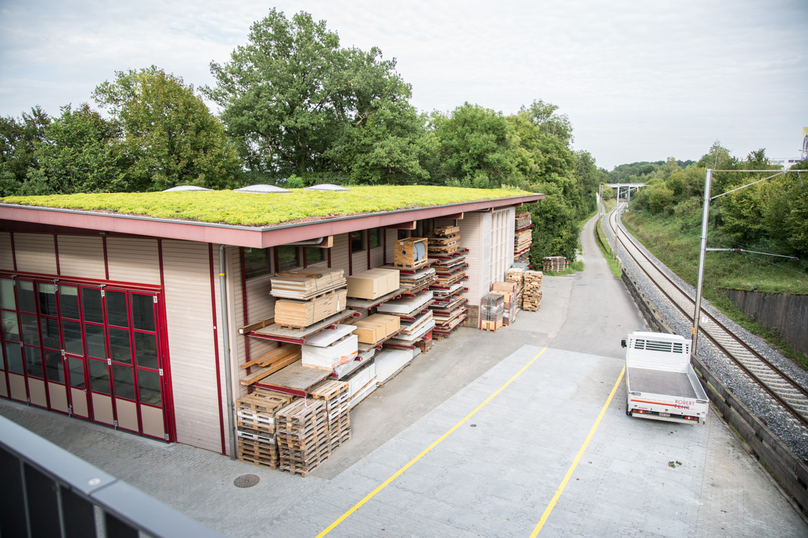 Robert Fehr gebruikt al 20 jaar lang stellingsystemen van OHRA. Bij de nieuwbouw van het bedrijf worden niet alleen het automatische magazijn, maar ook andere opslagzones, zoals het fineermagazijn en een buitenopslag, uitgerust met draagarmstellingen van OHRA.