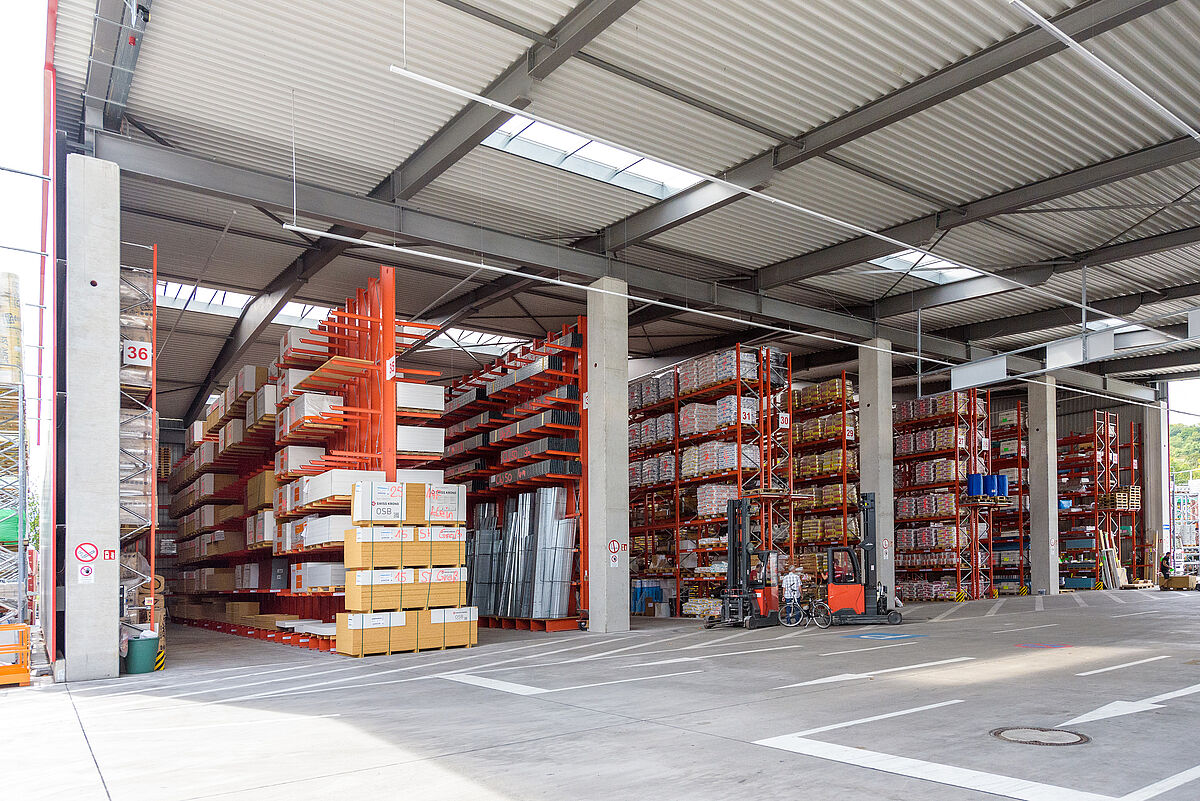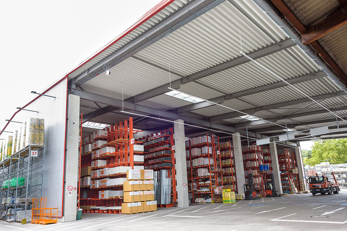 Götz + Moriz, de marktleider in bouwmaterialen en tegels in Südbaden, heeft zijn vestiging in Lörrach aanzienlijk uitgebreid. Het bedrijf investeerde voornamelijk in grotere opslagruimtes en een nieuw magazijn uitgerust met pallet- en draagarmstellingen van OHRA. De locatie voor de constructie van de rekken zorgde voor bijzondere uitdagingen: Sommige stellingen moesten langs een helling worden opgesteld, er moest rekening worden gehouden met andere windkrachten, en met een aardbevingszone 3. Door de stabiele constructie van de OHRA-stellingen kon echter een framehoogte tot 9.100 millimeter met veldbelastingen tot 25.200 kilogram en vakbelastingen tot 5.000 kilogram worden gerealiseerd.