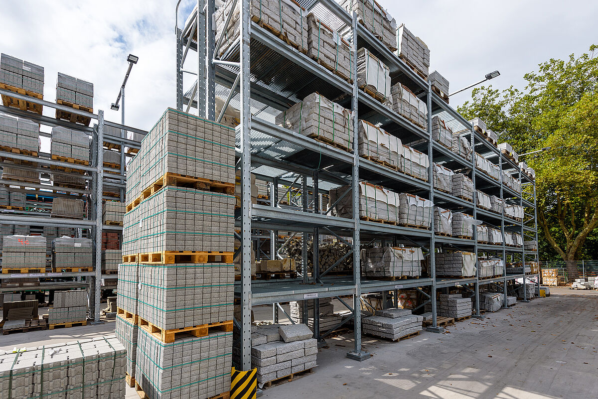 Aangezien Lörrach zich in een aardbevingszone 3 bevindt, zijn het framevakwerk en de voetplaten van de nieuwe OHRA-rekken berekend om deze extra belastingen veilig te kunnen absorberen. Omdat de rekken van OHRA zijn gemaakt van warmgewalste staalprofielen en niet van plaatmetaalprofielen, hebben ze een hoog draagvermogen. Bovendien knikken de staanders niet bij een zijdelingse belasting, zelfs wanneer ze door een vorklift worden geraakt. Omdat verschillende rijen met stellingen buiten op een helling lopen, ontwierpen de specialisten van OHRA ook palletrekken met trapsgewijze gemonteerde liggers. Speciale afstandsplaten tussen de basis van het rek en de montageplaat op de vloer compenseren bijkomend de hoogteverschillen. Ook de rekken in het magazijn dat langs één kant open is, vraagt om een hogere berekende belasting, aangezien één kant van de hal een opening heeft die 30 procent groter is en de windkrachten dus in de berekening moesten worden meegenomen.