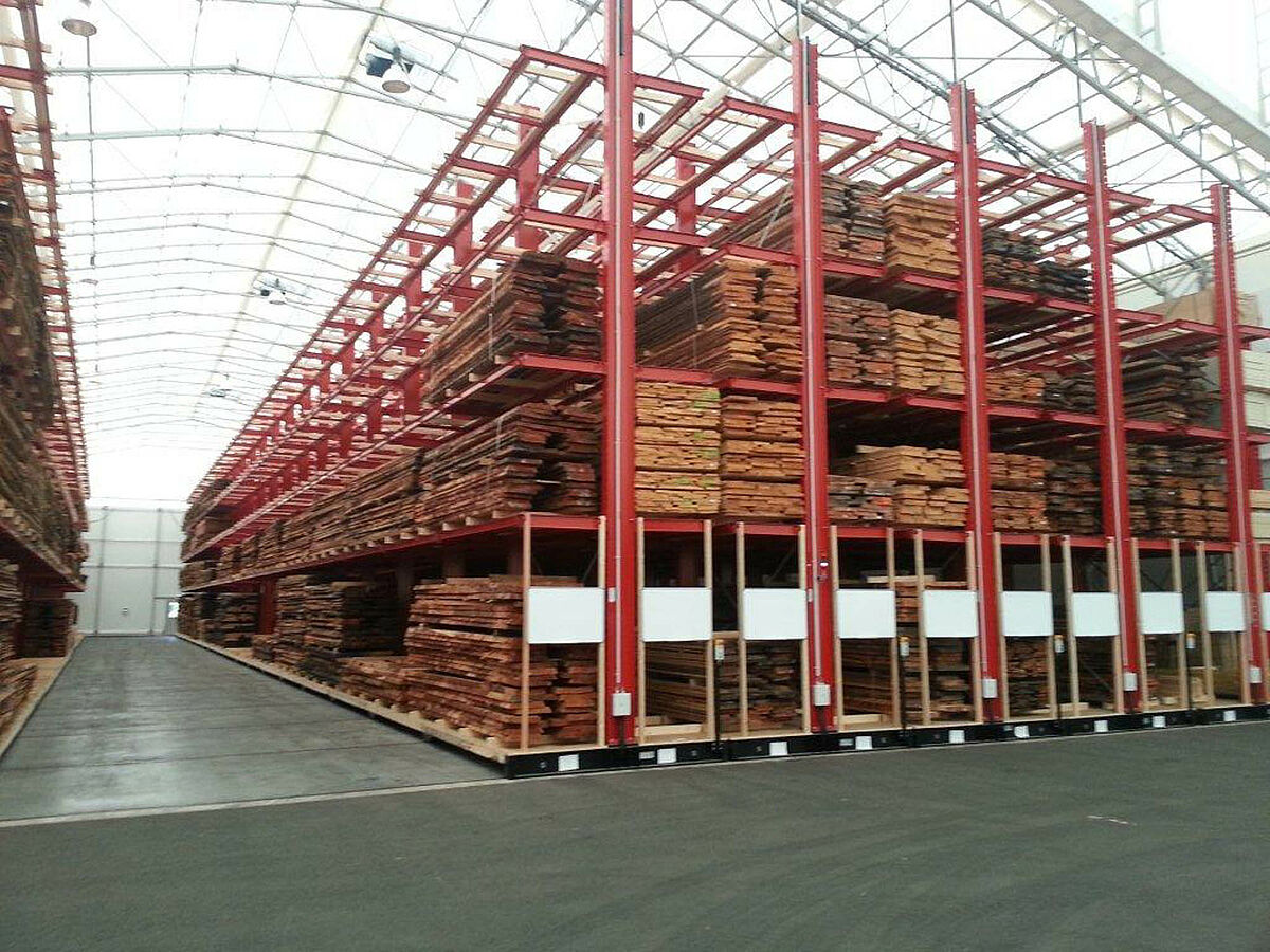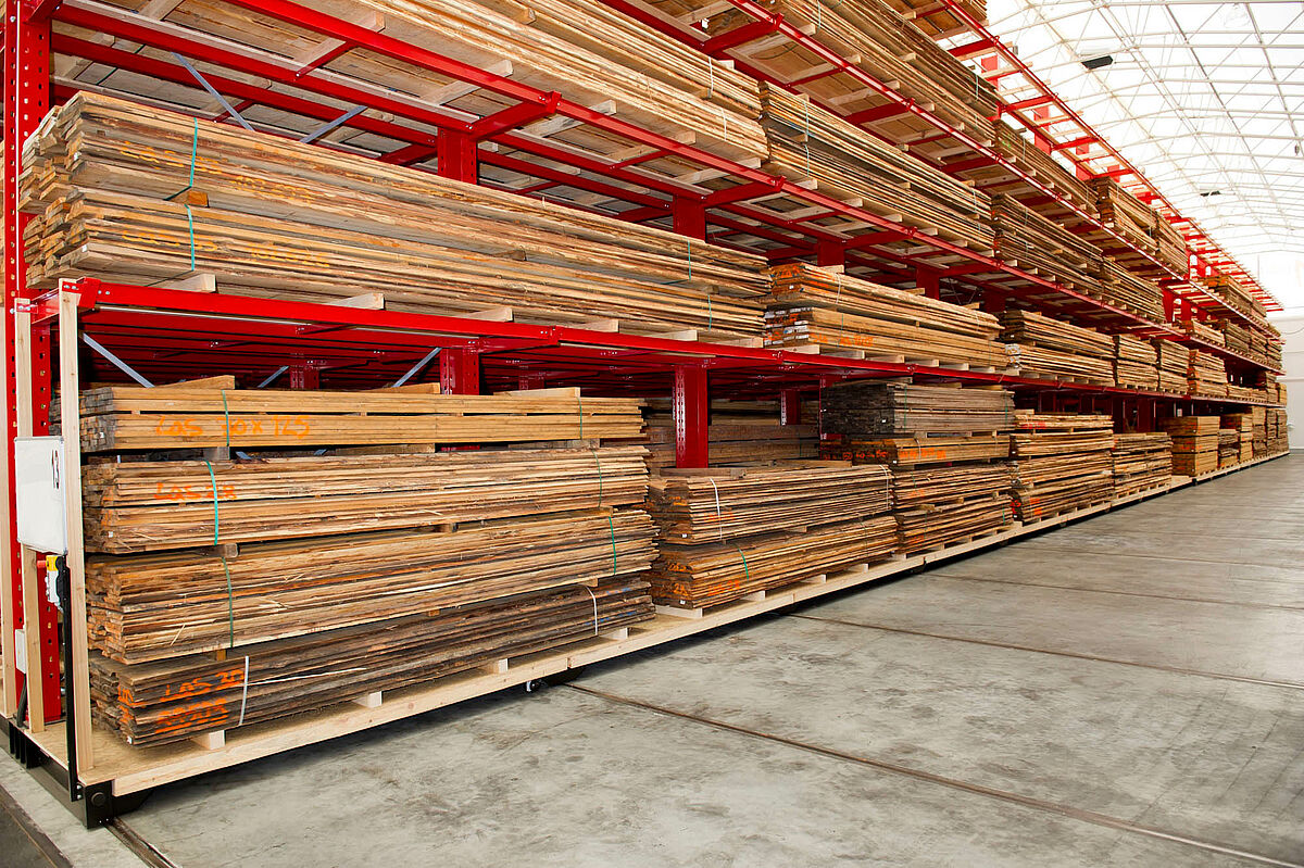 Om de toegangstijden tot de artikelen te verbeteren en het magazijnoppervlak beter te gebruiken, besloot Hechenblaickner daarom om het centrale magazijn met verrijdbare stellingen uit te rusten. Als leverancier van draagarmstellingen koos de houthandel uit Graz de in Kerpen, Duitsland, gevestigde draagarmspecialist OHRA. Dit bedrijf had niet alleen al ervaring met het bouwen van verrijdbare stellingen, maar kon ook de noodzakelijke service voor later bieden. Nog een voordeel was de geringe breedte van de massieve, uit warmgewalst staal gemaakte stellingstaanders. Daardoor ontstonden bredere gangen tussen de stellingen die daardoor zowel met voor- als met zijladers kunnen worden bediend.