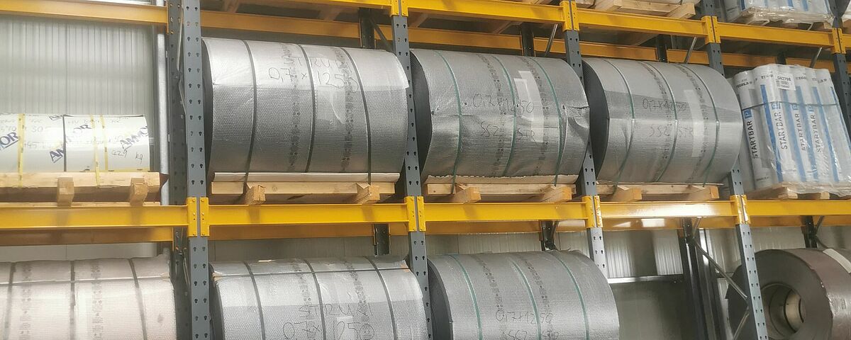 Het oude opslagconcept met vloeropslag en een stellingsysteem dat slechts gedeeltelijk bij het product paste, leidde herhaaldelijk tot beschadiging van de tot 1.500 kilogram zware coils en tot hoge opslagkosten. Daarom besloot Invesztál het nieuwe magazijn uit te rusten met speciaal aangepaste stellingen voor intensief gebruik van OHRA. Hiervoor leverden de magazijnspecialisten uit Kerpen een 19,9 meter lang stellingsysteem, dat door de specialisten van Invesztál werd geïnstalleerd en dat vijf opslagniveaus biedt op een hoogte van 6 meter, elk met een niveaubelasting van 5.000 kilogram. De robuuste palletstellingen zijn gemaakt van warmgewalste stalen kwaliteitsprofielen voor hoge belastingen en veilig werken. De hoogte van de afzonderlijke liggerniveaus kan worden aangepast in stappen van 100 millimeter. De stellingen voor Invesztál zijn zo gedimensioneerd dat de coils veilig op houten pallets kunnen worden opgeslagen.