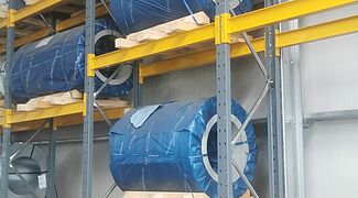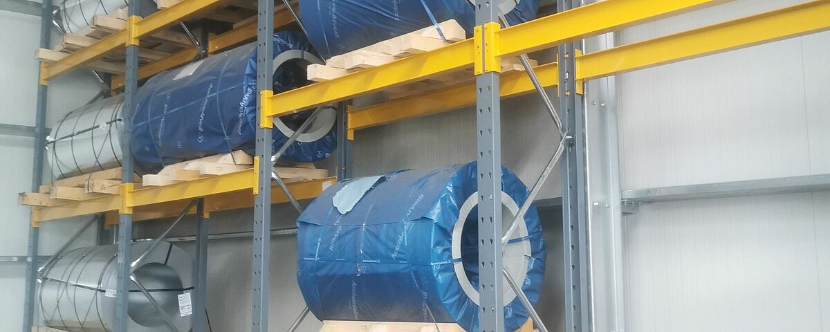Coils van de meest uiteenlopende (non-ferro) metaalplaten vormen de grondstof waaruit Invesztál de meest uiteenlopende vormen en soorten dakbedekkings- en gootsystemen produceert. Tot nu toe sloeg het bedrijf ze op de vloer op of in palletstellingen die niet ideaal waren voor de opslag van coils. Dankzij nieuwe op maat gemaakte palletstellingen voor intensief gebruik van OHRA kon het bedrijf de schade aan de coils beperken en de ruimte in een nieuw magazijn efficiënt benutten.