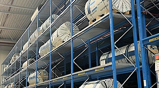 De combinatie van kraagarm- en palletstellingen maakt de opslag van zo verschillende materialen mogelijk zoals lijmen, aluminium- en GVK-rollen, multiplexpakketten, PVC-vloeren of houten en polyurethaanschuim-lijsten. Een voordeel van OHRA's stellingen, die gemaakt zijn van warmgewalste stalen profielen, is hun hoge draagvermogen: Bij Knaus Tabbert dragen de kraagarmstellingen bijvoorbeeld tot 12 ton per staander, en het mogen van een enkele kraagarm bedraagt tot 1.000 kilogram – zelfs op het hoogste opslagniveau op een hoogte van 7,5 meter. De GVK-rollen met een gewicht tot 1,2 ton en de rollen van plaatmetaal met een gewicht tot 1,8 ton worden daarentegen opgeslagen in palletstellingen. Roosterbodems zorgen voor flexibele opslag, ongeacht het formaat van de laadhulpmiddelen voor de rollen. Ook in de draagarmstellingen zorgen roosterbodems er soms voor dat er een grote verscheidenheid aan bakken en laaddragers kan worden opgeslagen.