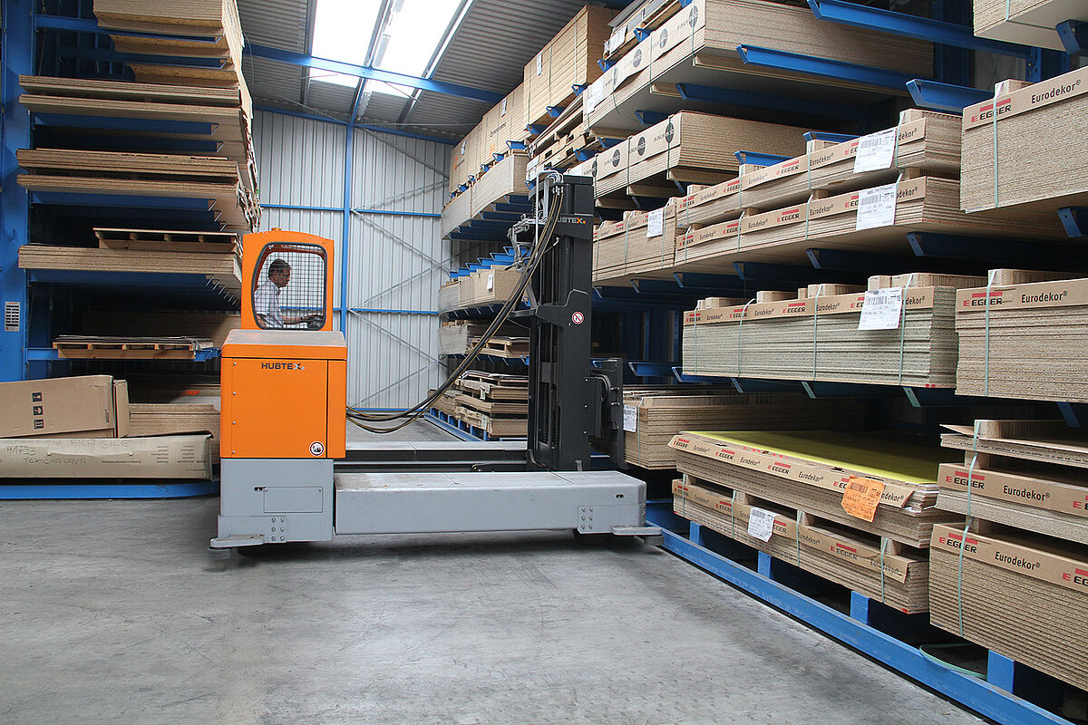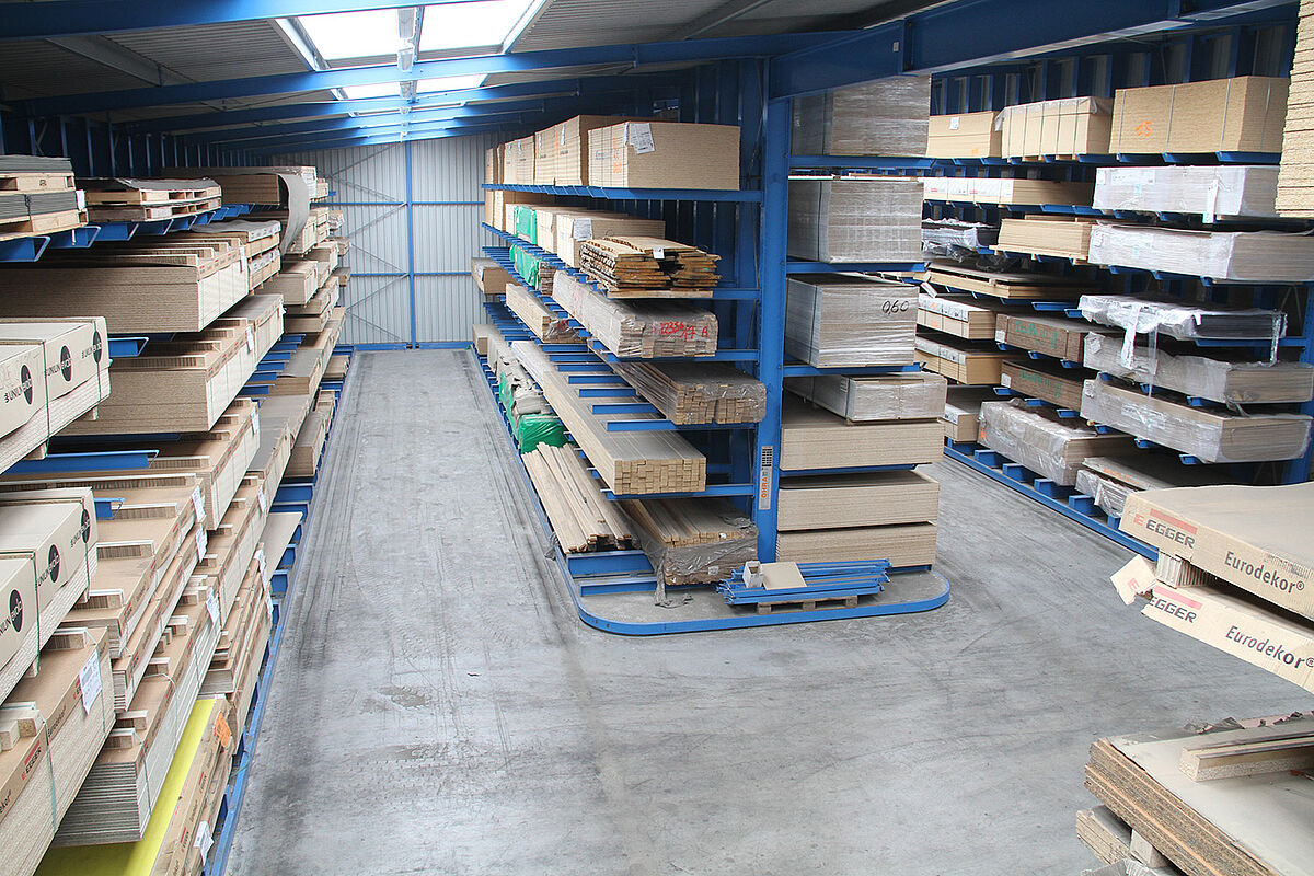 Zo ontstond er een 38 meter lange hal waarvan de buitenwanden telkens uit een eenzijdige draagarmstelling bestaan. Bovendien werd er in het midden tussen beide rekken een tweezijdige draagarmstelling geplaatst. Geleiderails maken het gebruik van een multidirectionele zijlader in de smalle gang mogelijk. Door middel van de individueel op maat gesneden rekken met een hoogte van 5,5, 6,3 en 7,1 meter kon de hal optimaal aangepast worden aan de omgeving. Elk van de 1850 mm lange draagarmen draagt een last van maximaal 600 kilogram. Daarbij zijn de draagarmen niet aan de staanders geschroefd of gelast, maar worden ze flexibel ingehaakt in een rooster van 100 mm in de rekstaanders. Zo kunnen ze bij aanstoten meegeven.