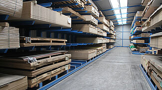 Het bedrijf uit Blois bij Orléans levert hout en houtmaterialen aan zakelijke en privéklanten. De groeiende vraag vereiste de opbouw van nieuwe opslagcapaciteiten voor met melamine gecoate en naturelle houten platen. Aangezien Laboissiere al magazijnen had uitgerust met rekken van OHRA, kreeg de Europese marktleider voor draagarmstellingen ook de opdracht voor de bouw van het nieuwe magazijn voor platen. Daarbij kon het voorstel om het magazijn als rekkenhal te bouwen overtuigen: De stabiele, uit warmgewalst staal gemaakte rekstaanders dienen hierbij tegelijkertijd als dragende constructie voor het afdak en de wanden. Dankzij de aparte, vrijstaande hal kon er snel en goedkoop een specifieke opslagruimte voor houten platen gecreëerd worden zonder de bedrijfsprocessen in de onderneming te storen.