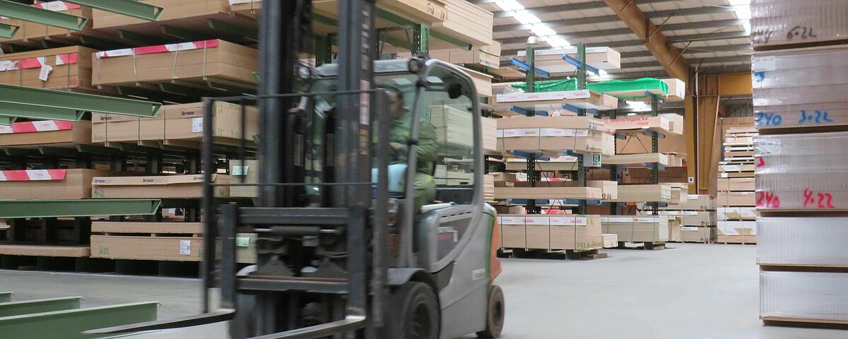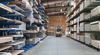 OHRA installeerde daarom verschillende stellingsystemen in de opslagruimte: Daartoe behoren draagarmstellingen, waarvan de 1.300 millimeter lange armen elk een draagvermogen van 750 kilogram hebben; het hoogste opslagniveau is 5 meter. Hier worden vooral platen opgeslagen die een hoge omloopsnelheid hebben en dienovereenkomstig snel moeten worden gepickt. Omdat in het HPL-platengebied een groot aantal verschillende artikelen moest worden ondergebracht, die worden opgeslagen op speciale pallets van 3050 x 1.300 millimeter, is hier een palletstelling gebruikt: Met een lengte van ongeveer tien meter en een hoogte van ongeveer 6 meter heeft het 15 opslagniveaus. Hierdoor ontstaat een groot aantal opslagniveaus, waardoor artikelspecifieke opslag per liggerpaar mogelijk is en de goederen dus snel toegankelijk zijn.