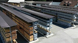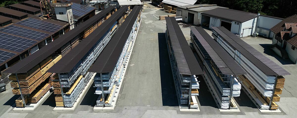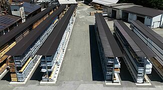 Marles besloot daarom het bestaande magazijn te vervangen door tien rijen draagarmstellingen van OHRA. De stellingen met een staanderhoogte van 6.080 millimeter maken het mogelijk om de houtpakketten op vier niveaus op te slaan en bieden dus aanzienlijk meer opslagcapaciteit op dezelfde oppervlakte. Bovendien is een directe toegang tot elk artikel mogelijk. Een geïntegreerd, 1,5 meter diep dak beschermt het opgeslagen hout tegen weersinvloeden, terwijl de stellingen zelf thermisch verzinkt zijn.