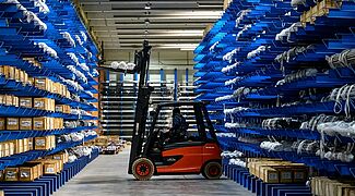 Mundinger Transport, een gespecialiseerd staaltransportbedrijf voor de distributie van staafmateriaal, vertrouwt consequent op een consistente materiaalbehandeling met vorkheftrucks in het nieuwe magazijn in Rudersberg, Baden-Württemberg. "De kranen die in de meeste magazijnen voor langgoed worden gebruikt, zijn vaak het knelpunt voor een efficiënte intralogistiek", zegt directeur Dietmar Wiedmann. "Als daarentegen alle logistieke processen met een heftruck worden uitgevoerd, beschikken we over een heel flexibel en efficiënt systeem." Aangezien Mundinger Transport het staafmateriaal voor haar klanten ook van elkaar scheidt, bundelt, verpakt en zelfs zaagt, is efficiëntie bij de behandeling van het materiaal bijzonder belangrijk. Wiedmann voegt eraan toe: "Bovendien kunnen de prestaties van het magazijn heel eenvoudig worden verhoogd door het aantal gebruikte vorkheftrucks te vergroten en dat is niet mogelijk met kranen."