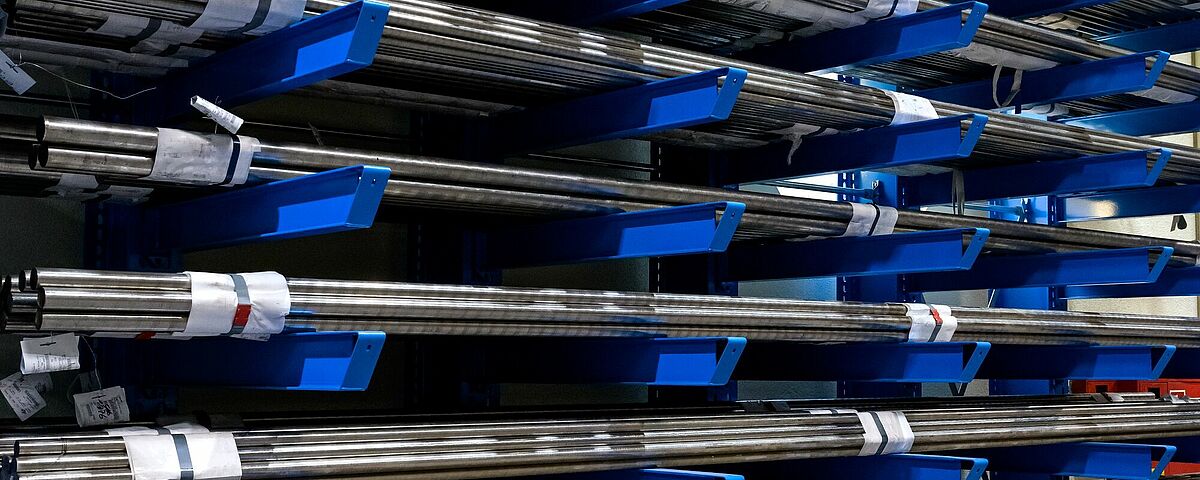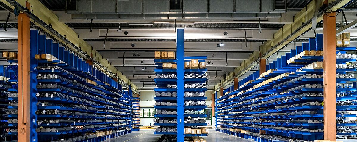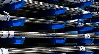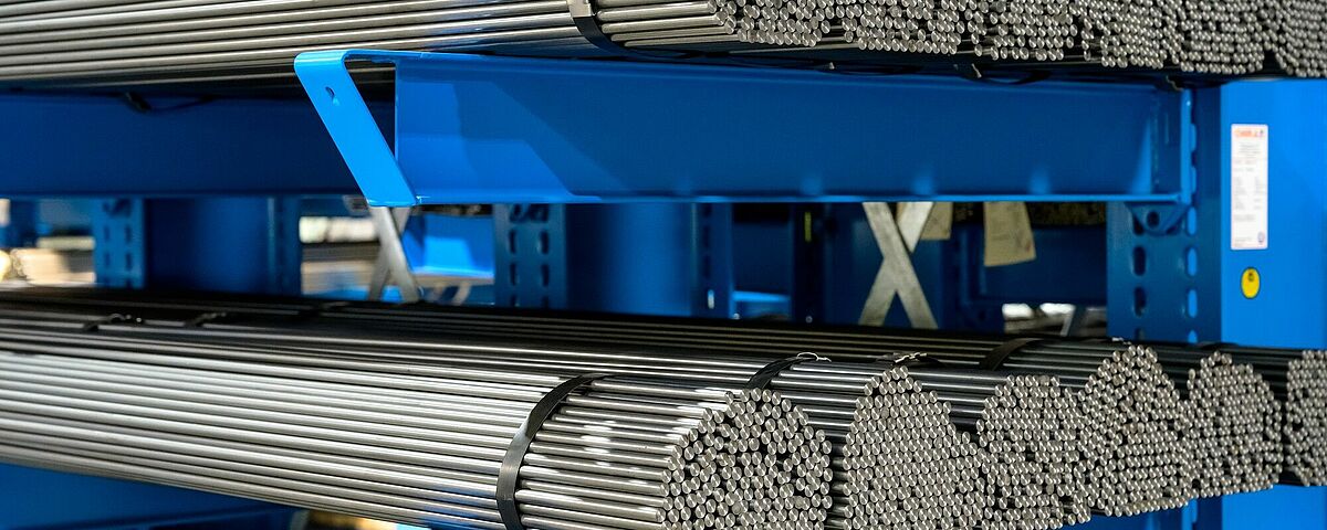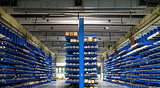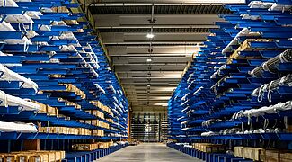 Dit stelde de basisvoorwaarden voor het draagarmstellingensysteem: bovenste opslagniveau op 5,25 meter, tien opslagniveaus, vakbelasting 4 ton, bodembelasting 40 ton. "Slechts enkele fabrikanten van rekken hebben standaardrekken voor deze hoge belastingen in hun assortiment", zegt Wiedmann. OHRA kon daarentegen een passend concept bieden. Door het gebruik van volwandige stalen profielen voor alle dragende elementen zijn de draagarmstellingen van het bedrijf uit Kerpen uiterst stabiel. "Het fijne raster van de hangende draagarmen van slechts 5 centimeter was ook belangrijk voor ons.", voegt Wiedmann toe. “Zo kunnen we de compartimenthoogtes heel precies afstemmen op de werkelijke hoogte van de bundels. Daardoor slaan we weinig lucht op of kunnen we de benodigde hefhoogtes minimaliseren - elke centimeter die bespaard wordt, verkort de behandelingstijd."