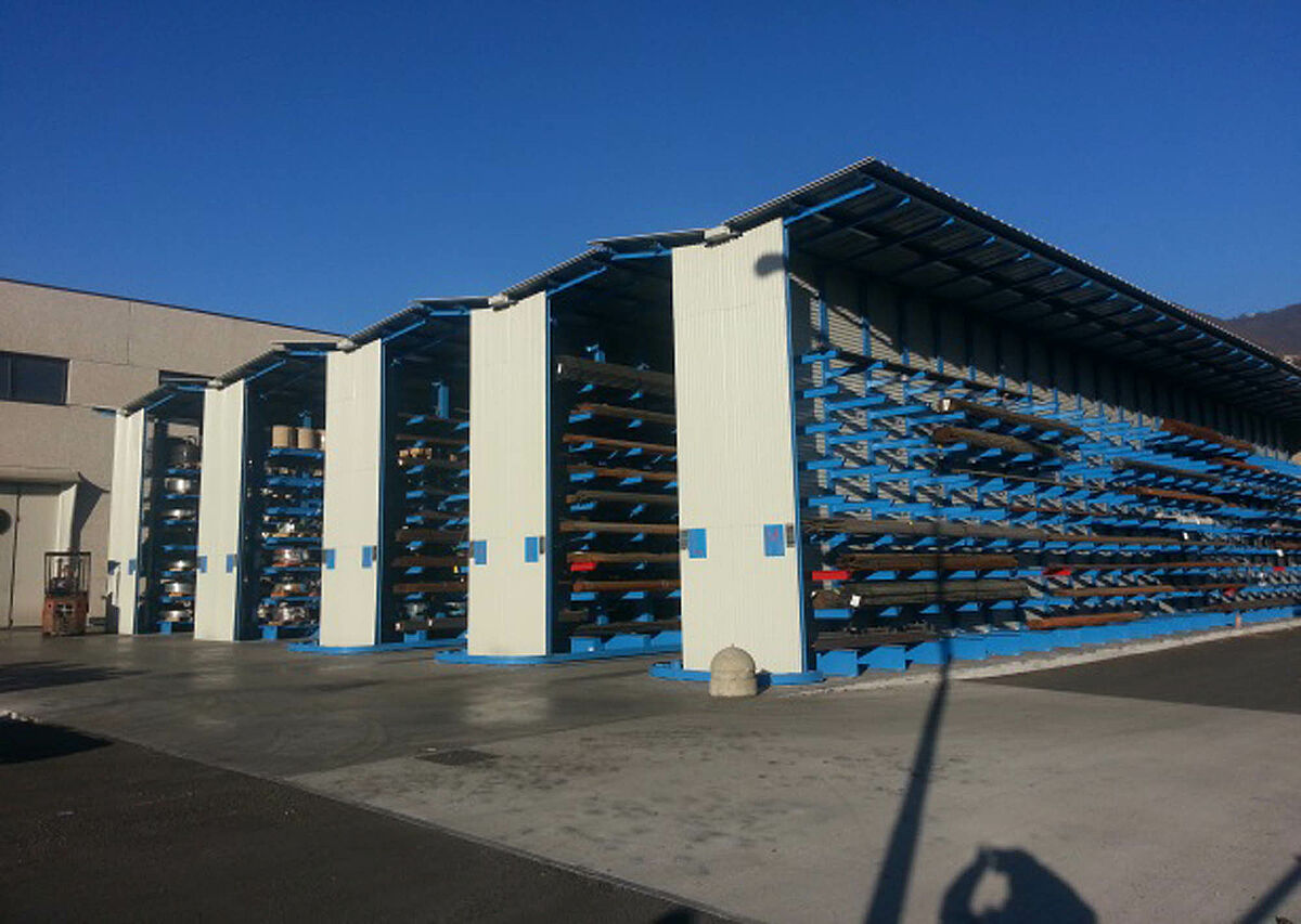 Rosa Catene produceert in de vestiging Calolziocorte kettingen voor toepassingen in de landbouw, de industrie en in werkplaatsen. De voortdurende groei van het bedrijf maakte de bouw noodzakelijk van een nieuw magazijn voor ruwe materialen voor plaatband op pallets en stalen staven in bundels. De opdracht voor de bouw van het magazijn ging naar OHRA. De in Kerpen in Duitsland gevestigde specialist in draagarmstellingsystemen overtuigde Rosa Catene met een concept waarbij de staanders van de draagarmstellingen tegelijkertijd dienden als draagconstructie voor de hal. Bij het voorgestelde concept overlappen de dakelementen van de zes stellinggangen elkaar. Zo ontstaat een volledig overdekt, modulair magazijn dat in de toekomst zonder problemen kan worden uitgebreid. Bovendien biedt deze constructie duidelijke kostenvoordelen en is deze sneller gerealiseerd dan een traditionele hal.