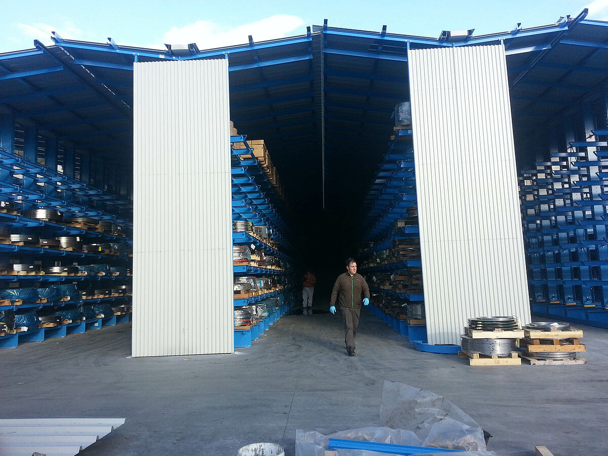 Het totale magazijn is ongeveer 900 vierkante meter groot en bestaat uit vijf 30 meter lange gangen met tweezijdige draagarmstellingen en één enkelzijdige stellinggang. De stellingsystemen van OHRA worden gemaakt uit stabiele warmgewalste staalprofielen waarmee grote bouwhoogten en draaglasten mogelijk zijn. De robuuste bouwwijze vermindert bovendien de kosten- en tijdsinvestering voor reparaties en onderhoud, zoals die noodzakelijk zijn bij botsingen en dergelijke bij traditionele, uit plaatprofielen vervaardigde stellingconstructies.