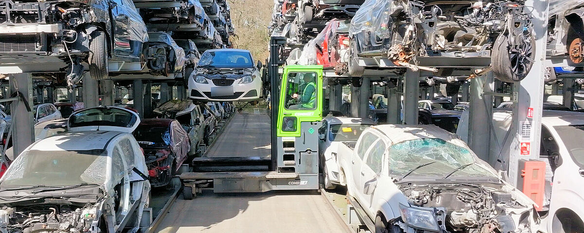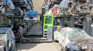 Om zoveel mogelijk recycle voertuigen, altijd direct toegankelijk te hebben, slaat Silverlake Automotive Recycling, Hampshire, auto's, SUV's en bestelwagens op in draagarmstellingen van OHRA. De meer dan 8 meter hoge stellingen maken het mogelijk om vijf voertuigen, elk tot 2 ton zwaar, veilig boven elkaar te plaatsen. De stellingrijen zijn voorzien van geleiderails, zodat de voertuigen met een zijlader gemakkelijk in en uit de draaqarmstelling kunnen worden gehaald. Extra voordeel is dat hierdoor de gangpaden tussen de stellingen bijzonder smal kunnen worden gehouden, waardoor er tevens meer opslagcapaciteit per vierkante meter ontstaat. In totaal kan Silverlake hierdoor circa 2.500 recycle voertuigen op het terrein opslaan