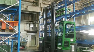 In vergelijking met de alternatieve opslag op de grond kan Solvaro met de nieuwe stellinginstallatie aanzienlijk meer dieptrekgereedschappen op het beschikbare oppervlak opslaan. Belangrijker is echter de directe, snelle toegang tot elk gereedschap: Een speciale vorkheftruck van Combilift die speciaal voor de dieptrekgereedschappen is aangeschaft, kan de zware gereedschappen gemakkelijk uit het rek tillen en rechtstreeks naar de dieptrekpers rijden. Tegelijkertijd is het dieptrekwerktuig dankzij de op maat gemaakte stellingconstructie te allen tijde beschermd tegen beschadiging.