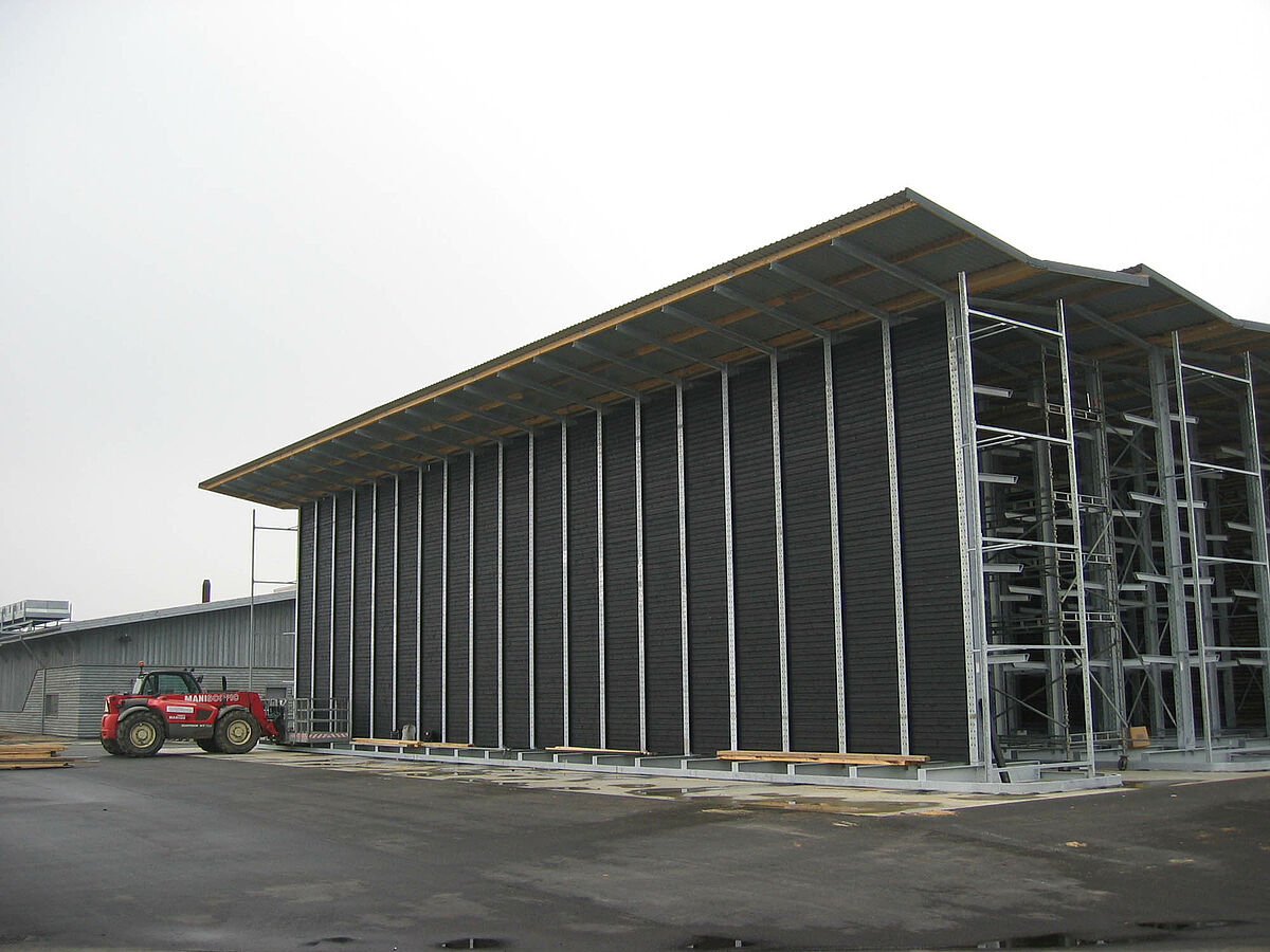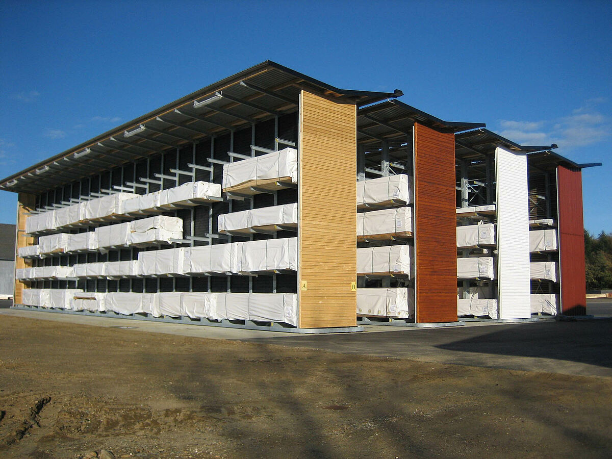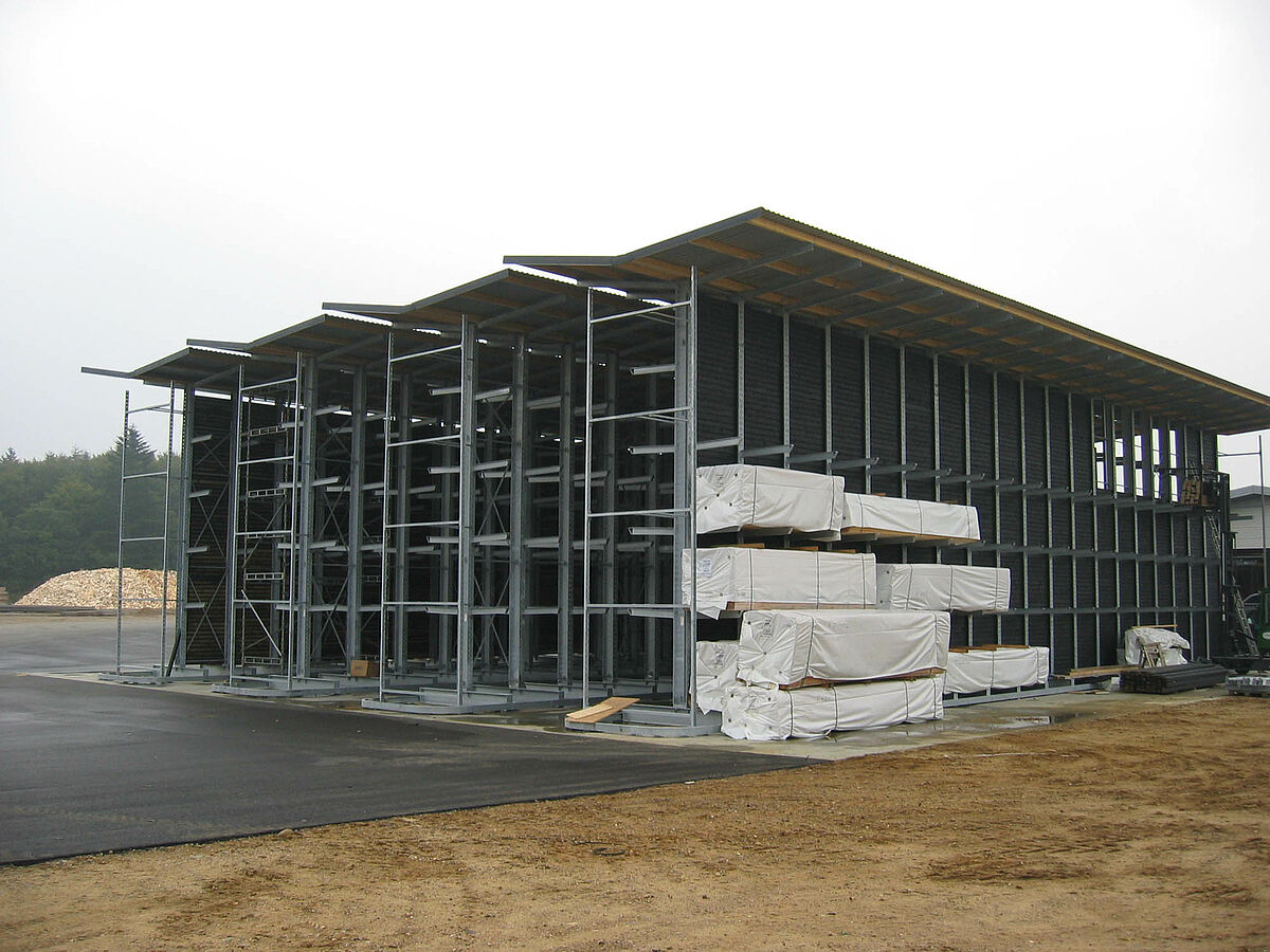 De onbehandelde houten pakketten werden in het verleden op de vrije binnenplaats opgeslagen. Daarbij was een groot grondoppervlak nodig en de hantering van de houtprofielen was tijdrovend. Daarom wilde de klant een opslagmogelijkheid scheppen, die in de directe nabijheid van het verwerkingsproces in de aanwezige productiehal geplaatst kan worden. Tegelijkertijd zou de nieuwe opslagplaats op een mogelijk enge ruimte moeten worden gebouwd, om de kosten voor het betongrondoppervlak en dakoppervlak zo gering mogelijk te houden. Bovendien moet er een uitbreiding voor de toekomst mogelijk zijn, zonder dat verbouwingen noodzakelijk zouden zijn.