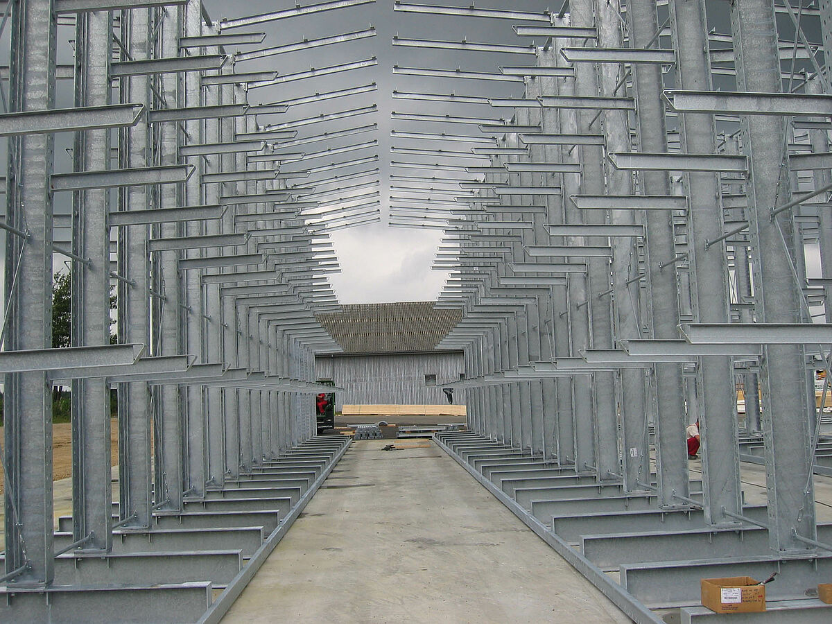 Uit meerdere oplossingsuggesties besloot Superwood voor een thermisch verzinkte draagarmstelling installatie van OHRA. Overlappende dakelementen in combinatie met een smal gangpad voor het gebruik van een zijdelingse heftruck waren overtuigende argumenten voor de klant. De planning vond gezamenlijk plaats met een Deense handelspartner ter plekke bij de klant. Hier werden al van tevoren belangrijke punten zoals betonkwaliteit en betondikte van de funderingen evenals de vorm van de dak besproken.