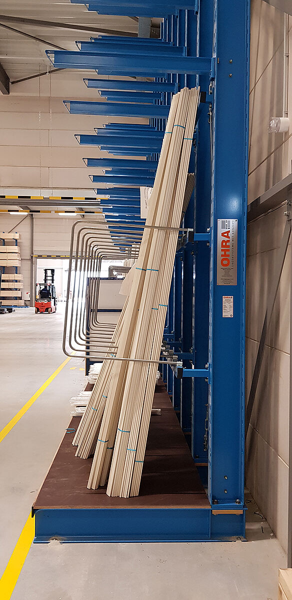 De stellingsystemen van OHRA hadden hun waarde al bewezen in de vestiging in Gouderak, waardoor men voor de nieuwe locatie ook voor opslagsystemen van de Europese marktleider voor draagarmstellingen koos. Daarnaast bood de flexibiliteit een grote meerwaarde voor hun gebruik: Zo zorgen roostervloeren in de draagarmstellingen voor een doorgaande opslag voor een breed scala aan palletformaten en goederen zonder gebruik te maken van storende tussenstaanders. Dit voorkomt ook dat de goederen tijdens het opslaan en picken beschadigd worden. Dankzij de stevige constructie van de stellingen- alle dragende delen zijn uit volwandige stalen profielen gemaakt – bij een palletstelling met een vakbreedte van 4.200 mm is een belasting van 7.377 kilogram per liggerpaar nog mogelijk.